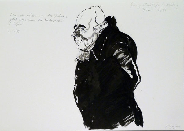 "G.Chr.L., Porträt", 2014, Tusche auf Karton, 29,7 x 42 cm