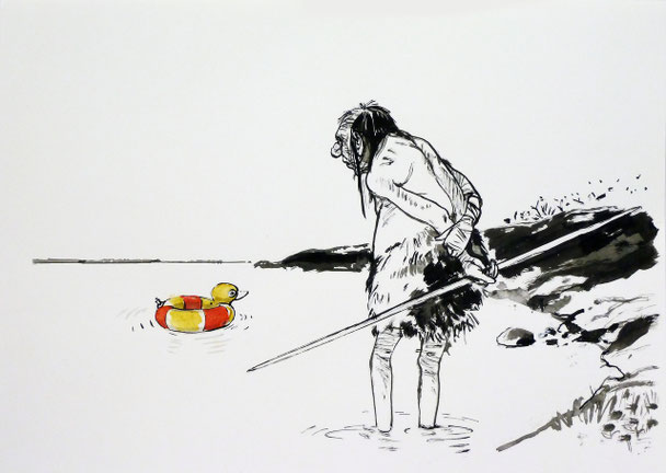 2014, Faserschreiber, Deckweiß auf Karton, 30,5 x 42 cm
